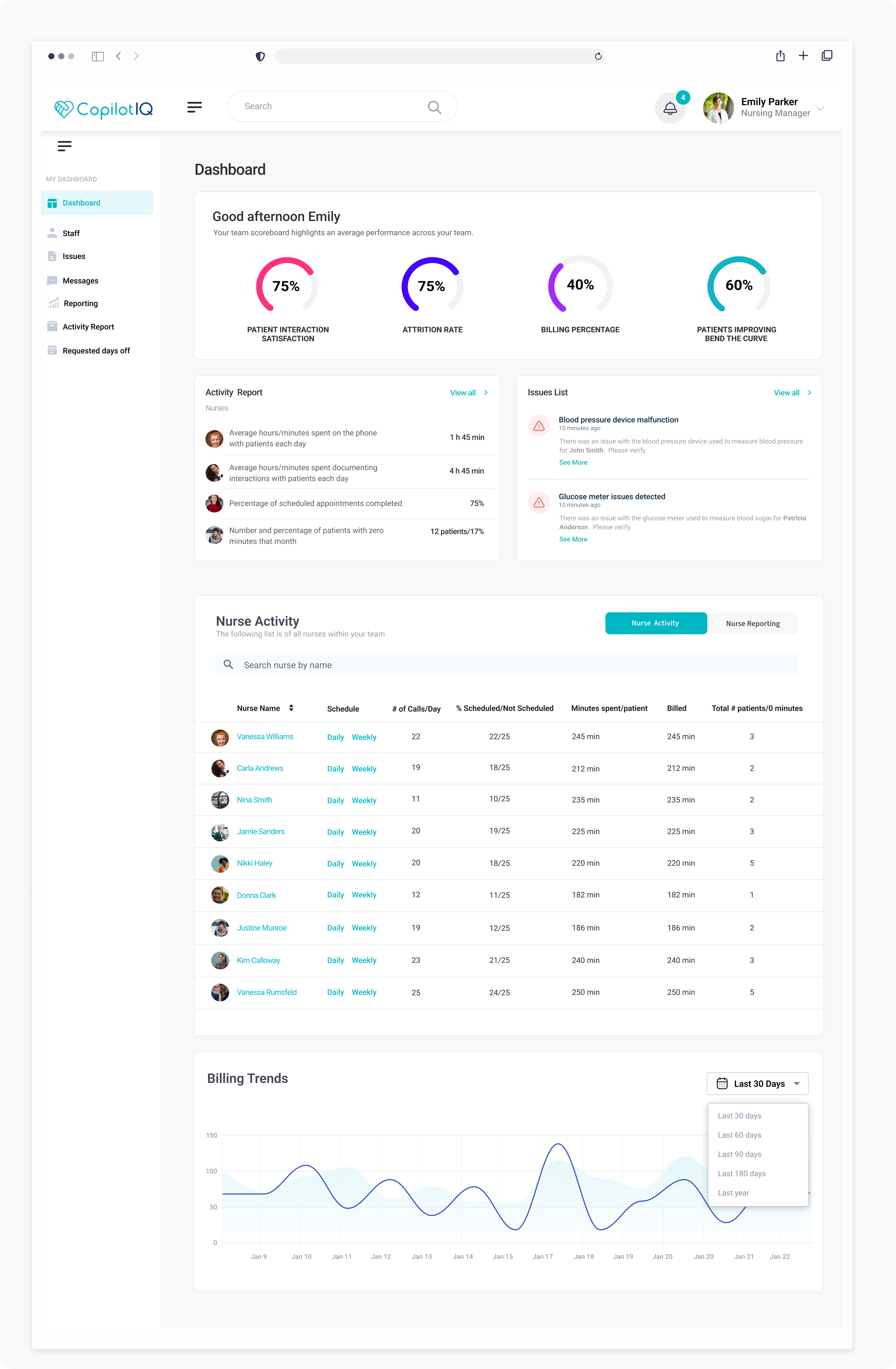 In compliance with NDAs, confidential information is omitted. Insights are my own. CopilotIQ enables nurses and providers to deliver frequent, direct-to-patient care for older Americans with chronic conditions such as diabetes and hypertension. The platform uses a data-driven approach to help older Americans live longer and healthier lives through connected care and personalized plans.