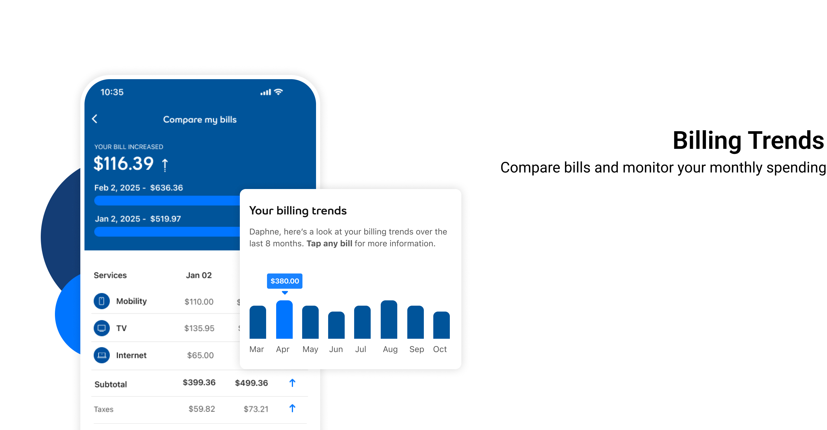 Offer a detailed view of charges per service; mobility, internet, TV, and home phone, including subtotals, discounts, and promotional adjustments. This granular breakdown helps users understand exactly what they’re paying for, compare across services, and identify changes over time.