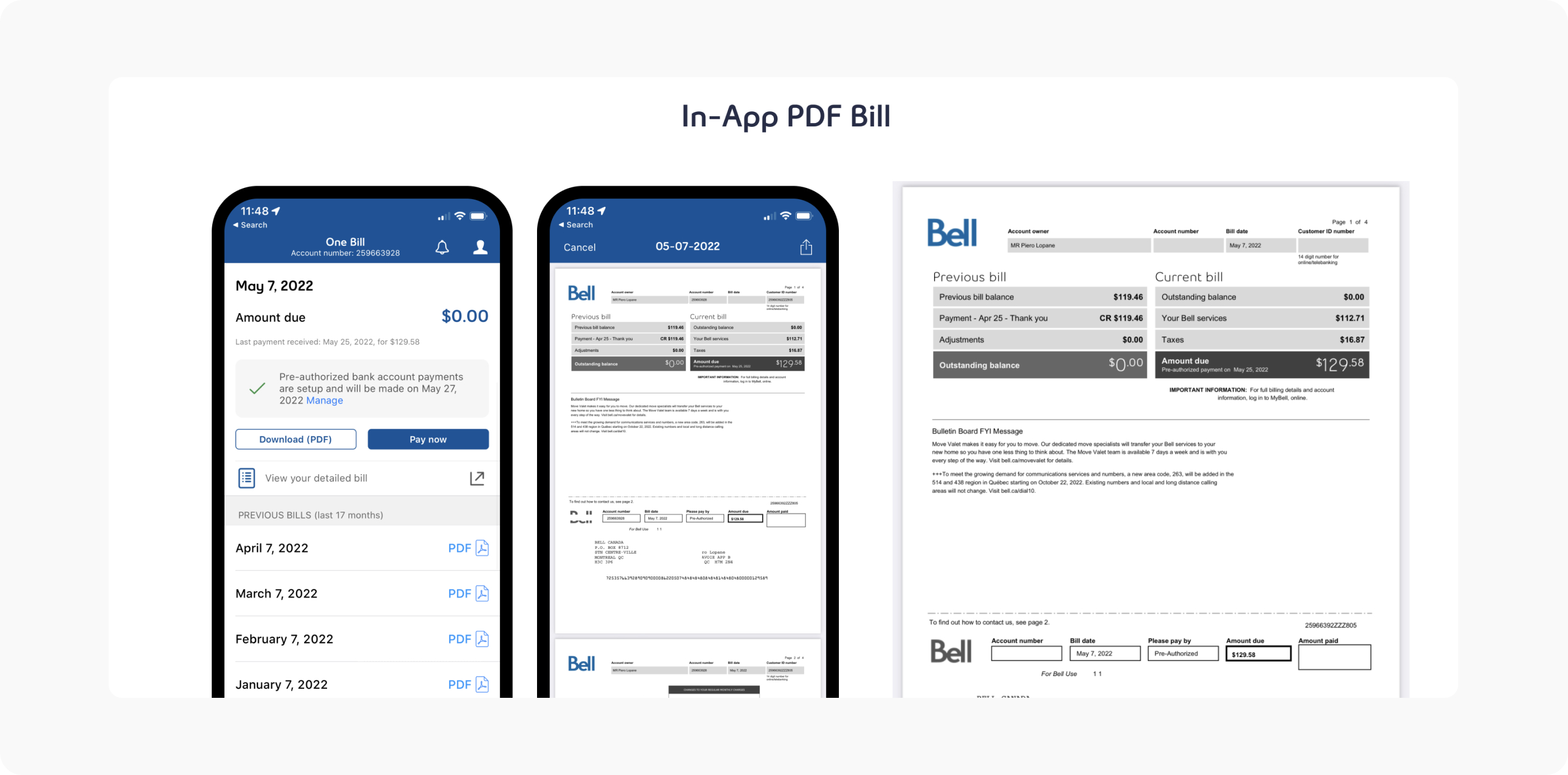 Bell's leadership recognized that PDF-only billing created significant operational overhead and user frustration. The unified billing initiative aimed to transform billing from a support driver into a self-service success. Key business objectives included: